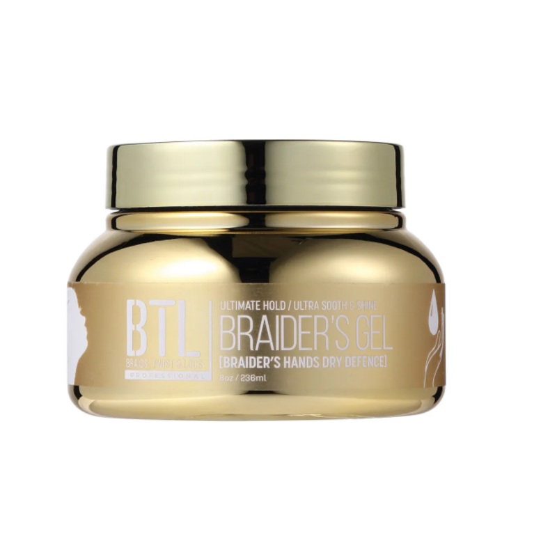 BTL Braiders Gel 8 Oz is designed to provide professional braiders with comfortable, dry application and long-lasting hold. With Dry Hand defense formula, this gel helps to prevent cracked skin, irritation and pain. It has the same holding level as the ori