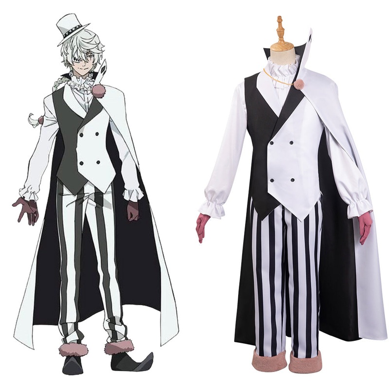 Bungou Stray Dogs 4th season - Gogoli Cosplay Costume Outfits Halloween Carnival Party SuitMaterialThickiy Ronior Fabric + Kniteed Fabrics + Velvet FabricPackage included:Coat + Shirt + Vest + Cloak + Gloves + Hat + Eyemask