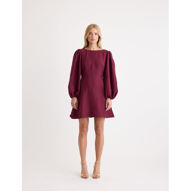 Round neck Long balloon sleeves Open back Lightly lined Size tip: we recommend your usual size