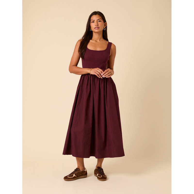 Scoop neckThick strapsSide pocketsA-line skirtSize tip: we recommend your usual size
