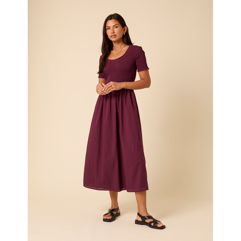 Scoop neck Shirred bodice Elasticated waist A-line shape Size tip: we recommend your usual size