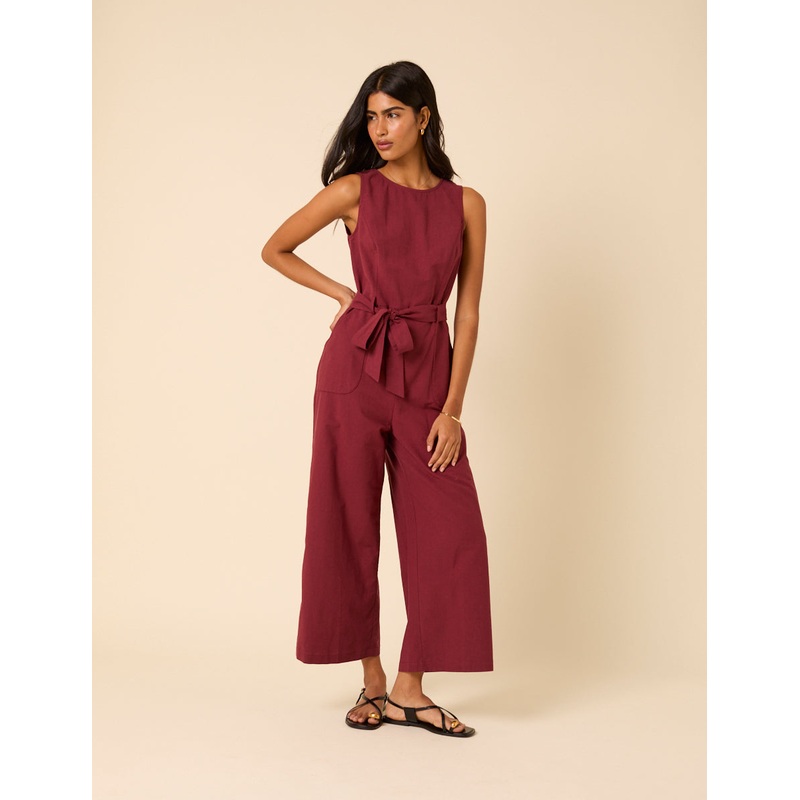 Burgundy Tie Waist Jumpsuit