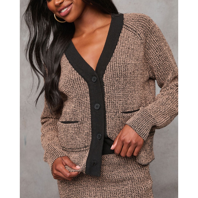 Where sophistication meets playful charm is the Meet the Business Only Contrast Trim Knit Cardigan. Crafted from crochet knit fabric, this cardigan features a sleek front button closure and practical front slip pockets. The contrast trim adds a touch of flair, making it the perfect companion for the Business Only Contrast Trim Knit Midi Skirtsold separately where together, they create a chic monochromatic look that’s effortlessly coordinated.