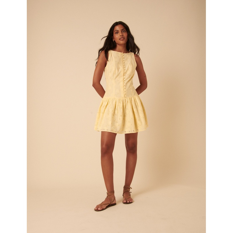 Butter Yellow Broderie Anglaise Claudia Mini Dress
