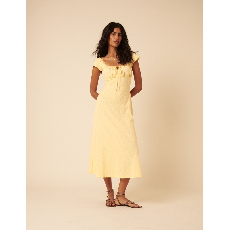 Butter Yellow Floral Embroidered Melissa Midi Dress