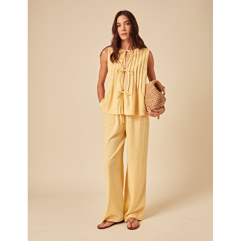 Simple, but with a twist. Coming in a butter yellow shade, our top features a sleeveless fit, and on-trend tie details. Style with everything you already own.