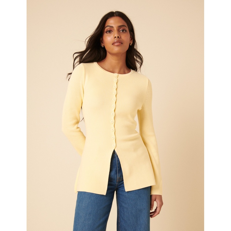 Round neck Button through placket Size tip: we recommend your usual size We recommend folding your knits to avoid any unwanted stretching
