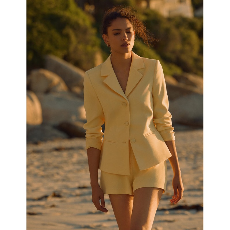 Designed for the perfect fit. Coming in butter yellow, our blazer has all the hallmarks of a classic, including three single breasted covered buttons and a notched neckline. We love its fitted design and slightly peplum hem. Style yours with our matching trousers.