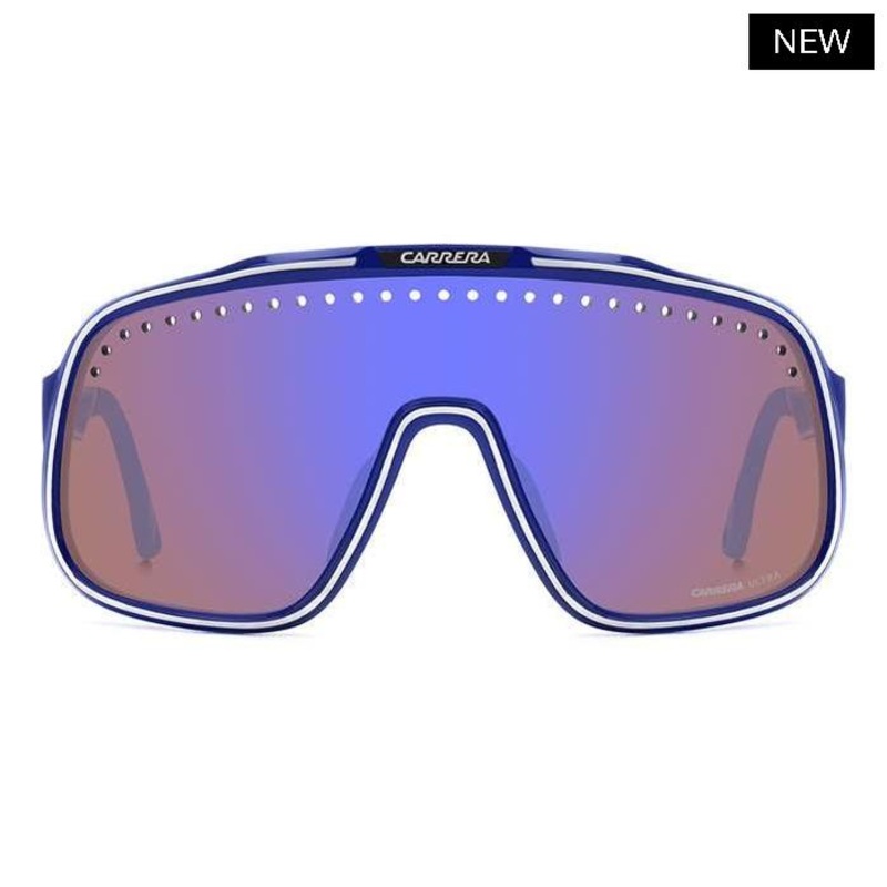 Inspired by sport and designed to be worn everywhere, these sunglasses express the bold style of Carrera. The shield front is decisive and on-trend as it wraps around to the sides, complete with perforations for added ventilation. The lens even comes in mi