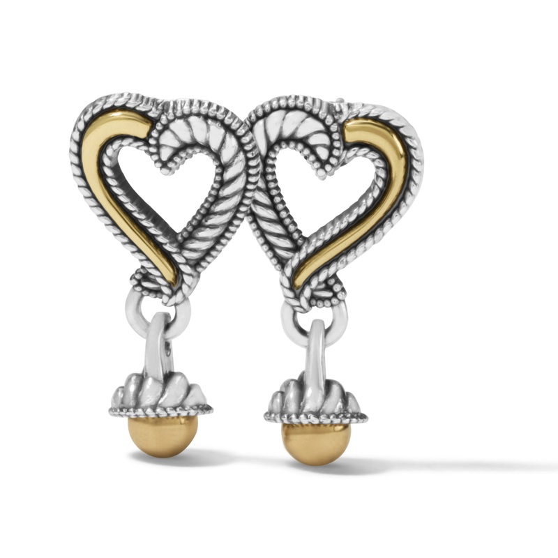 Ribbons of silver rope form these hearts, each with just a wisp of gold and a drop pendant, to add a touch of romance.