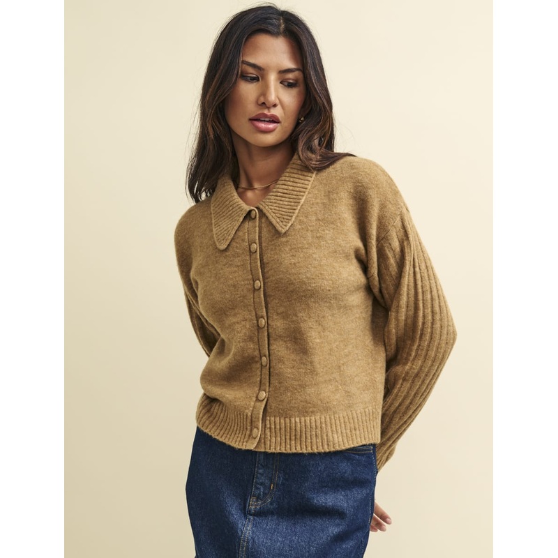 This biscuit-coloured cardigan ticks all boxes. An oversized collar nods to trends whilst providing additional cosiness. Wear solo or layer over a tee.Oversized collarLong balloon sleevesButton frontDesigned for an oversized fit, if you are looking for a c