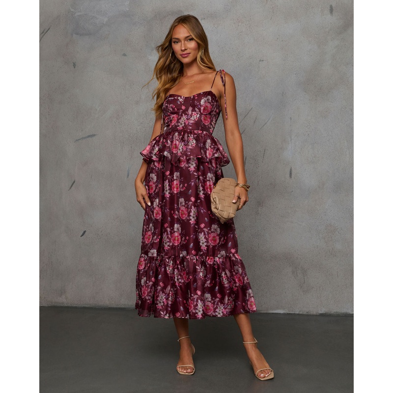 Unveil the magic of fall in the Canyon Sunset Peplum Organza Maxi Dress. Crafted from ethereal organza fabric, this dress features a playful peplum waist and adjustable shoulder ties for a fit thats both flattering and fun. The hidden back zipper closure e