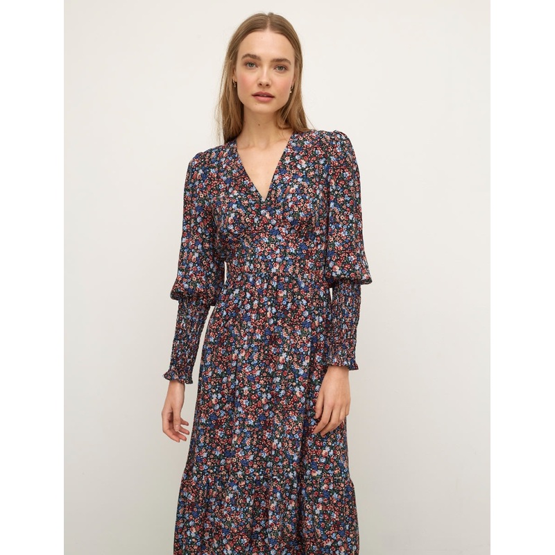 Budding blooms.Love cute prints? This Cara dress is the one for you. Decorated with dreamy floral blooms, it features long sleeves with heaps of shirring. A flowing shape that nips in at the waist secures with a tie on the back for a vintage aesthetic. Tea
