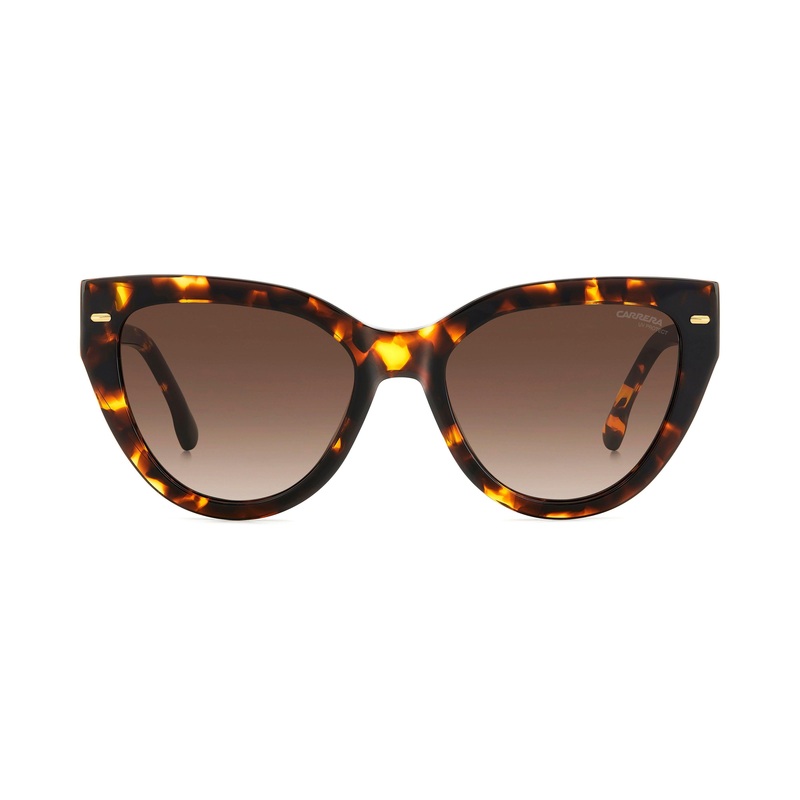 Carrera updates the most elegant eyewear shape, the cat eye, with these boldly proportioned sunglasses. Metal details shimmer on the acetate frames like small gems, including the frontal rivets and the iconic C in relief on each temple. The gradient sun lenses, which are prescription-friendly, protect the eyes and face.