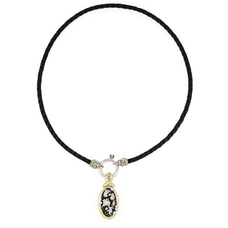 Carvo Medium Oval Lava Pendant on black Leather Spring Ring by John Medeiros Jewelry Collections.