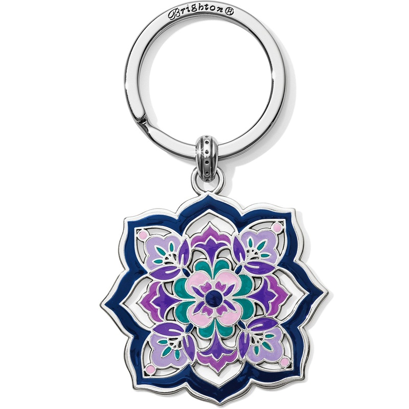 Lavender and purple flowers add an ultra-feminine touch to this key fob.Width: 2"Height: 2 1/2"Material: EnamelFinish: Silver plated