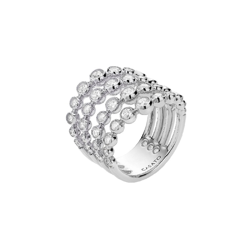 From Casato’s Boutique Collection, 18K white gold ring composed of four dgrad rows of diamond spheres 1.55cttw