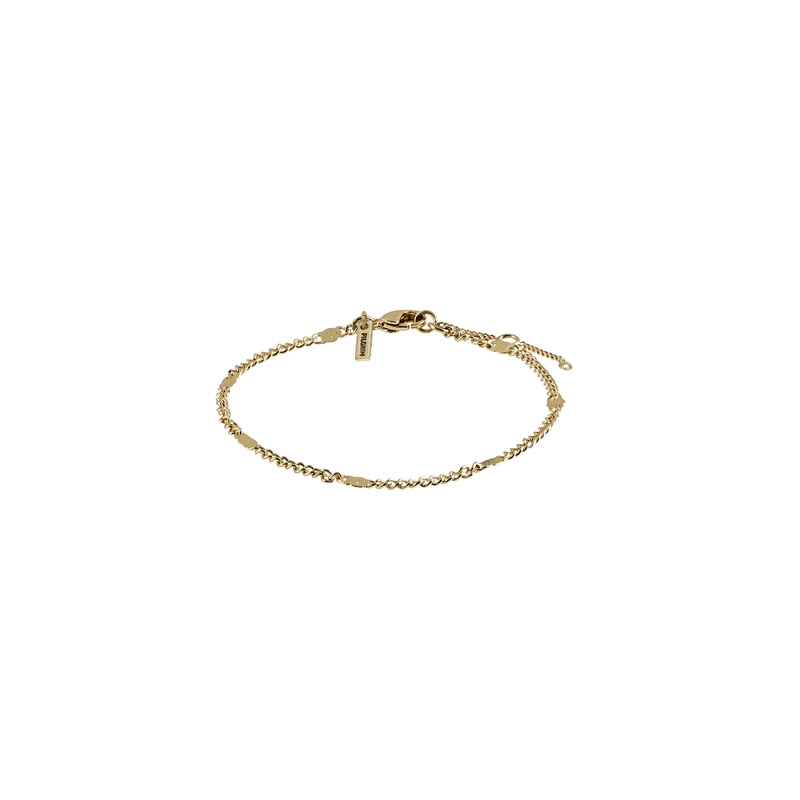 Gorgeous, delicate, gold-plated bracelet with an elegant structure. The classic chain bracelet has been given an enchanting pattern that captures the light in the form of flattened links placed at regular intervals in the chain. A simple design with a powerful effect. The bracelet is 16 cm and has a 3 cm extension chain, so it can be adjusted to suit your wrist size. A beautiful classic chain bracelet that accentuates your wrist, both alone and in combination with other stunning bracelets.