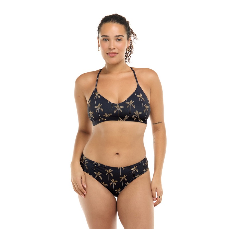 Introducing the Cayman Islands collectionyour gateway to tropical bliss. Made from recycled fabric and in collaboration with the US surfer Tatiana Weston-Webb, this collection showcases a stunning dark charcoal backdrop, beautifully contrasted by a tan-colored palm tree print.