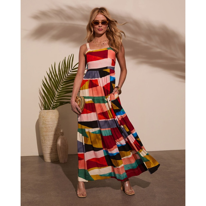 Meet your new vacation favorite: the Ceilia A-Line Printed Maxi Dress, where effortless style meets a playful edge. Designed in breezy pleated voile fabric, this maxi dress features a bold contrast trim that adds a modern twist to its timeless silhouette. The plunging neckline brings just the right amount of allure, while the adjustable shoulder straps ensure a perfect fit for every sun-soaked moment.