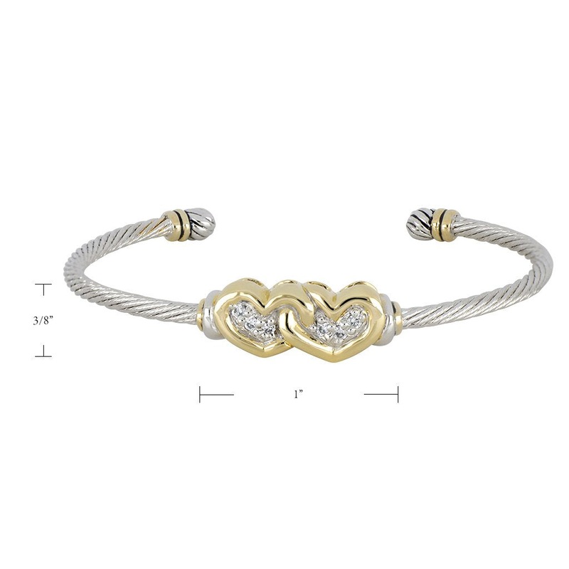 Made with rhodium and gold. Guaranteed for life.Celebration PetitePav Double HeartCuff Bracelet by John Medeiros Jewelry CollectionsFun symbols of love, hope and personality.Center Motif: 1-1/8"L x 1/4"W