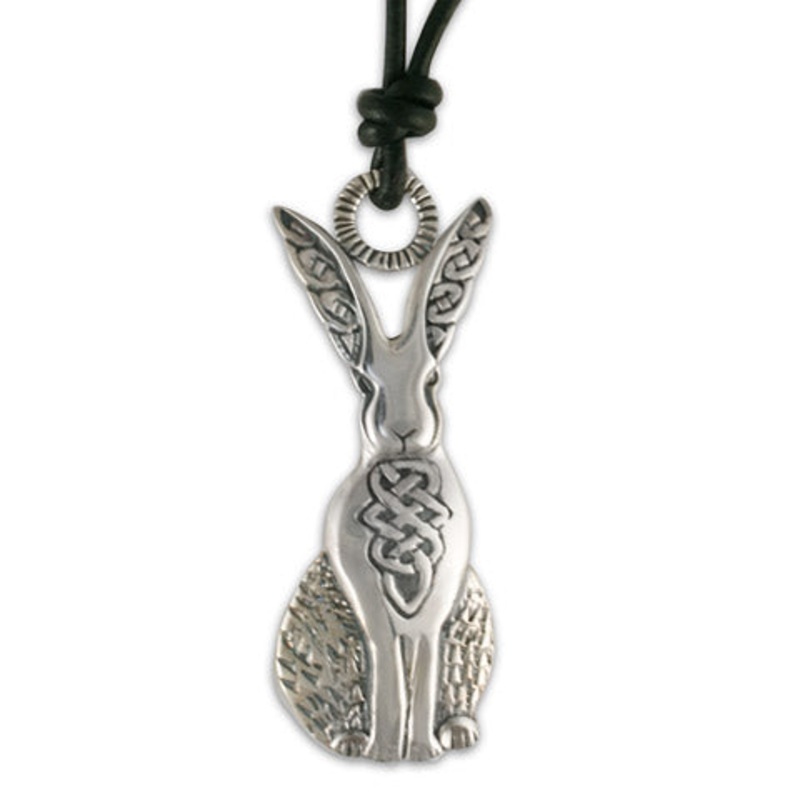 The Hare was a sacred animal to the ancient Celts, representing fertility, abundance, and rebirth. It is associated with the Moon and festivals of Spring. The Hare was said to be sacred to the moon goddess Andraste and the Celtic goddess Cerridwen. Wear this pendant, imbued with ancient Celtic symbols, to call into your life abundance, fertility, and connection to the Moon and Earth Goddesses, or as a reminder of the blessed abundance in your life already possessed.