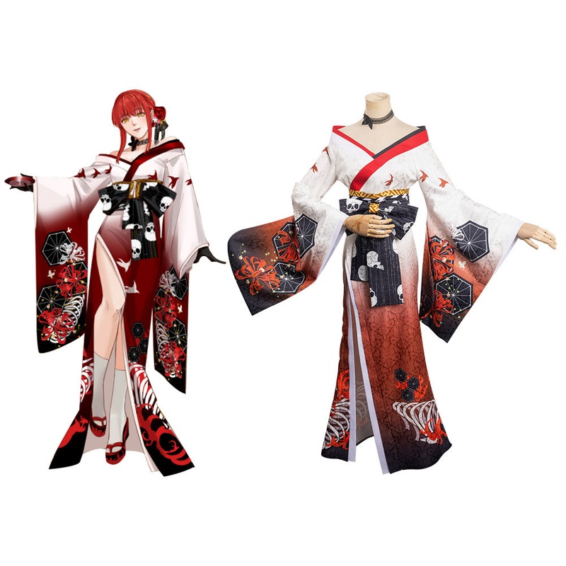 Chainsaw ManHyakkiyakous Shutendoji Makima Cosplay Costume Kimono Outfits Halloween Carnival Party Suit MaterialJacquard Cotton + Thickiy Ronior Fabric + Twill Fabrics Package included: Bowtie + Headband + Two Toe Socks + Dress + Gloves + Kimono + Neckband