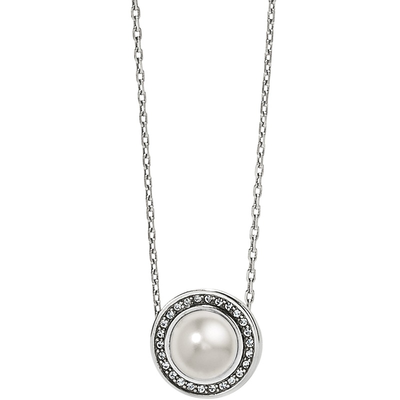 A lustrous glass pearl, encircled by a row of pave Swarovski, lends a look of refinement. Short, and great for layering.