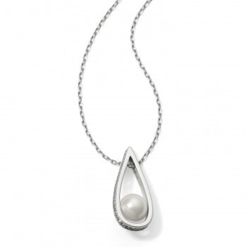 A single row of pave outlines this teardrop silhouette, at the bottom of which rests a lustrous glass pearl. Suggests the refinement of fine jewelry, and its length is great for layering.Closure: Lobster ClawLength: 16" - 18" AdjustablePendant Drop: 1 1/4"