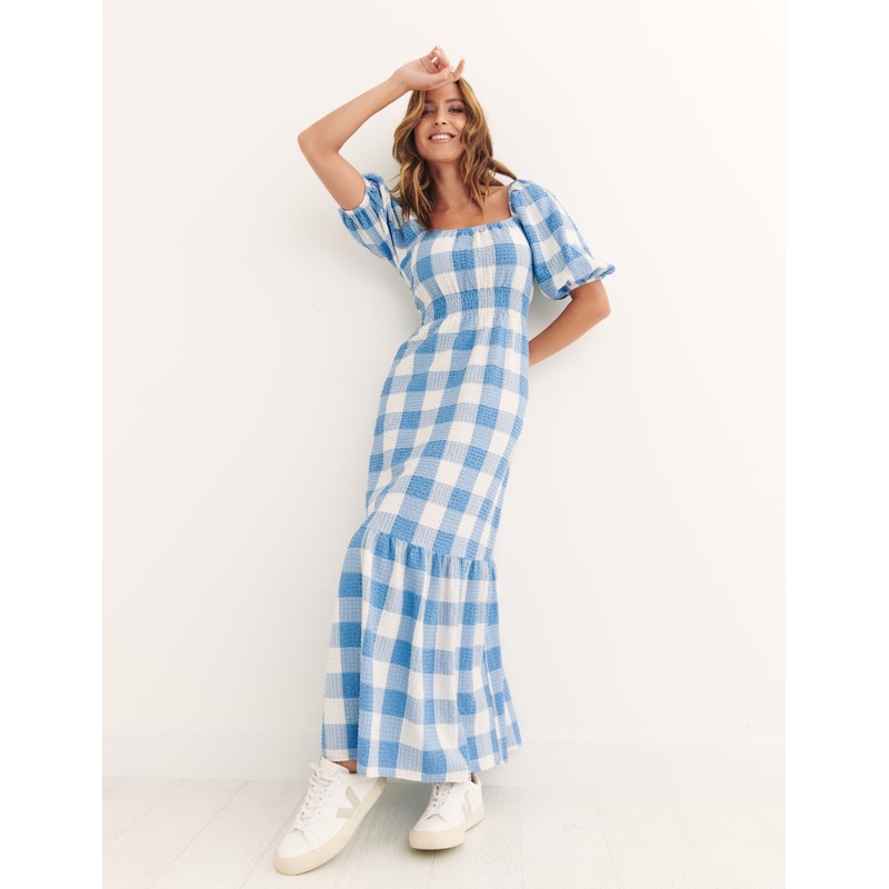 Easy to wear and even better to style, this gingham Charlie maxi dress will be the one you wear all season long. It features a relaxed frame that nips in at the waist, puff sleeves and a tiered hemline for balance. The perennial print placed on soft seersu