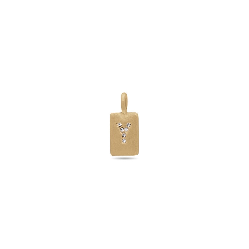 Simple and minimalist letter pendant with sparkling crystal stones, illustrating the letter Y.
