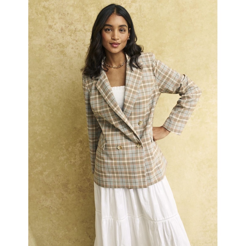 An investment piece. This heritage check blazer is truly timeless but so-now at the same time. Double breasted and boxy, two sharp lapels offset an intentionally oversized fit. Its sure to become one of your wardrobes greatest assets. Suit up or style down