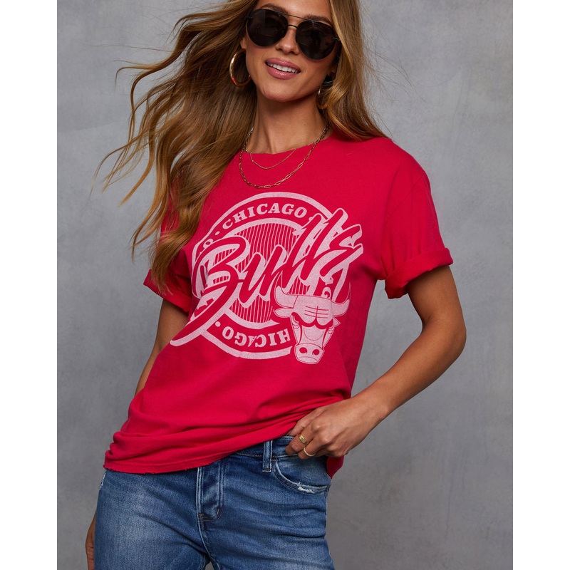 Sporty, stylish, and undeniably coolthe Chicago Bulls Short Sleeve Graphic Tee is an MVP in your closet lineup. Made from soft jersey fabric that feels as good as it looks, it features a bold Chicago Bulls graphic front and center, bringing effortless team spirit to your outfit. The light distressed detailing at the trims adds a touch of vintage cool, making it perfect for lounging at home or hosting a cozy watch party in style.