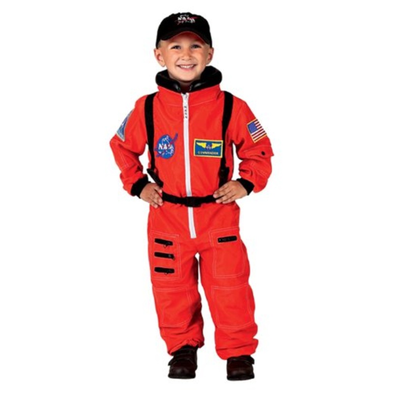 This top quality Astronaut Suit is sure to please your little space traveler. Its official look & feelmake it seem like it's real.Includes: Jumpsuit with official NASA patches, including special commander patch, official embroidered NASA cap.Color: Orange,