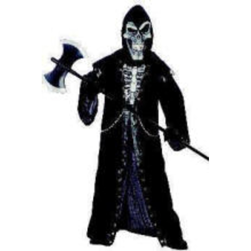 Includes: Poly Robe with Grommet & Chain Trim Accent, Screen Print Hood & Skull Mask
