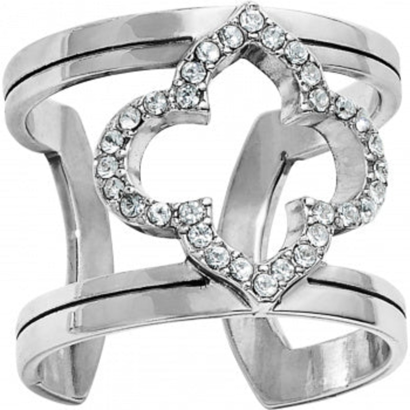 Embellished with a Swarovski-outlined arabesque, this elegant ring easily adjusts to your finger size.Width: 11/16"Material: Swarovski crystalFinish: Silver plated