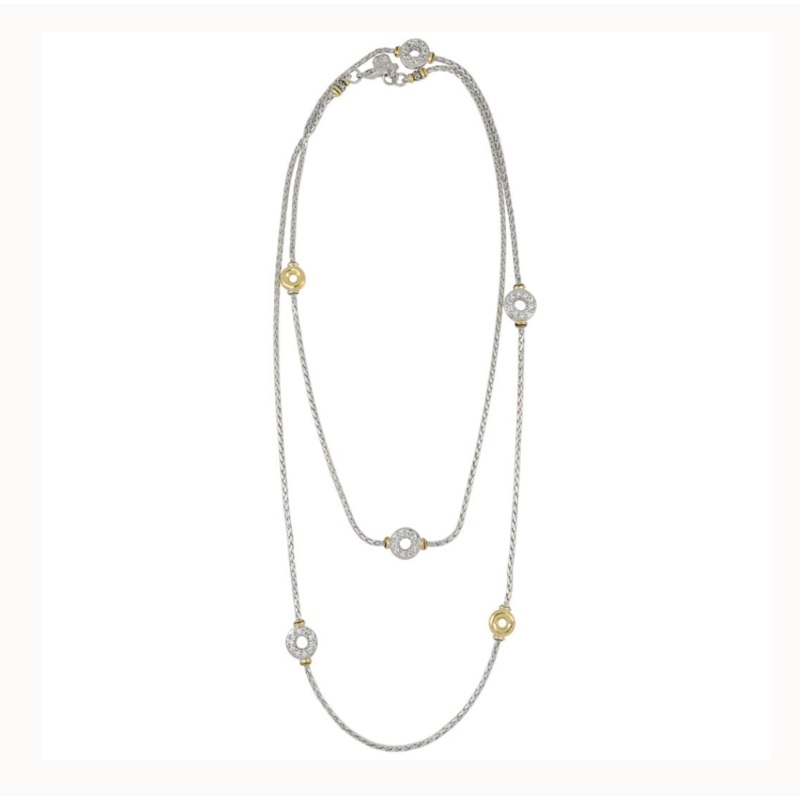 Ciclo D'Amor Petite Pav & Gold 36" Necklace by John Medeiros Jewelry Collections.Unique collection celebrating the gift of love.Length: 36"Gold Circles: 5/16" diameterPav Circles: 3/8" diameter