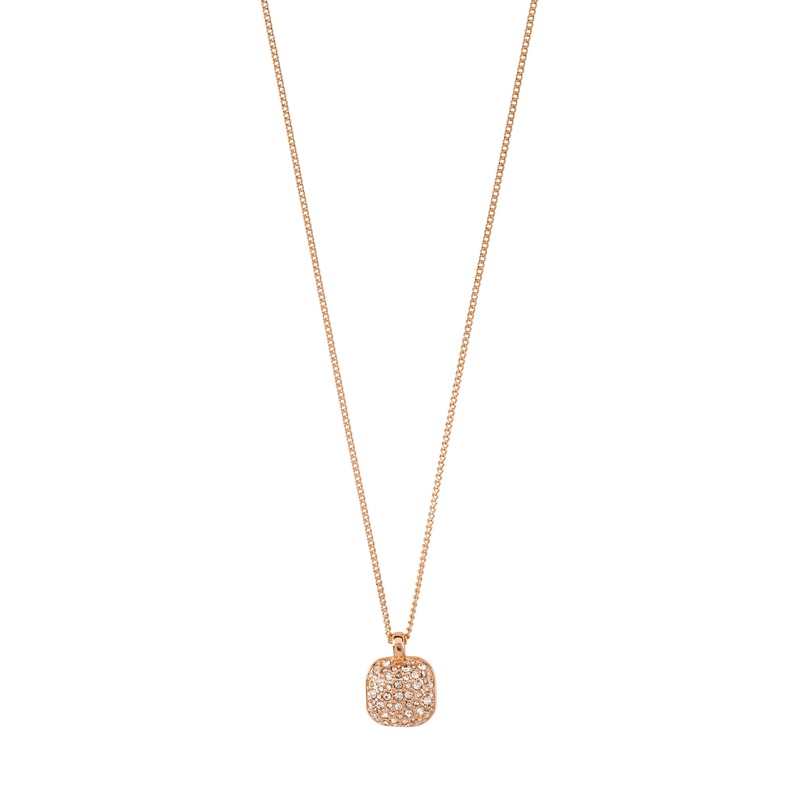 Add some golden shine with the rose gold-plated necklace from , a recycled item that is made from 95% recycled material. The slim chain has a simple and classic design, which is combined with shine and eye-catching effects from a square-shaped pendant with glittering Preciosa crystals. The necklace measures 40 cm + 9 cm extension chain.