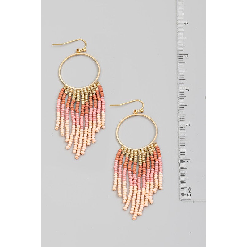 Circle Cutout Seed Beaded Fringe Drop Earrings