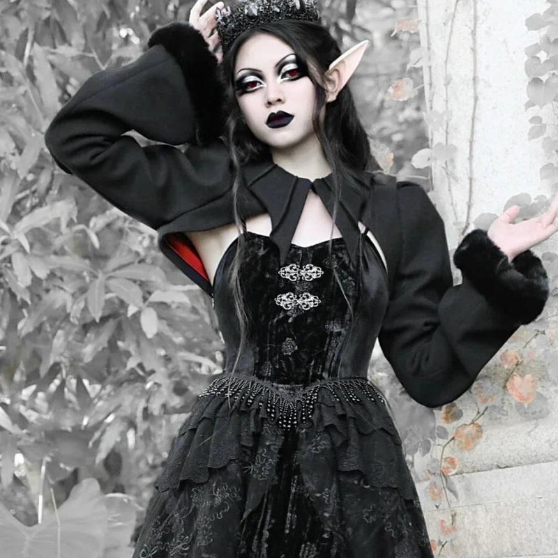 Be the first to review “Classic Gothic Woolen Bat Collar Dark Style Coat Black S~M”