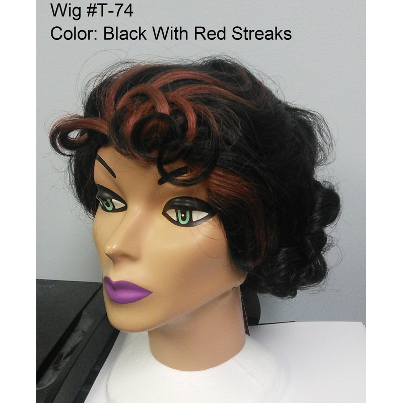 Clearance Wigs: Wig #T-74, Black With Red Streaks