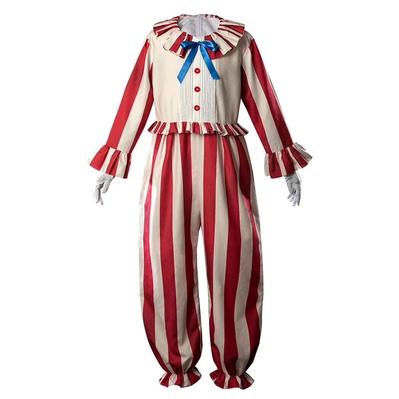 Clown cosplay costume crafted from breathable cotton for comfort, featuring a loose-fit design and available in our exclusive size chart from XS to XL.