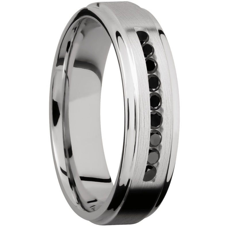 6 mm wide/Flat Grooved Edges/Cobalt Chrome band with an arrangement of 9, .03 carat Round Black Diamond stones in a Channel setting. – TCW 0.27ct. – TCW 0.27ct.