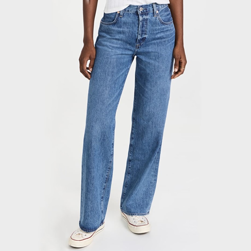 Citizens of Humanity Annina Jean in Pinnacle. This trouser inspired silhouette is designed to sit high on the waist with a flattering, ultra-relaxed wide-leg. Style yours with a sleek bodysuit or a classic t-shirt and blazer.