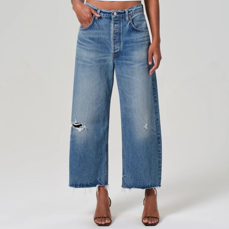 Citizens of Humanity Ayla Raw Hem Crop in Solano. The Ayla Raw Hem Crop, inspired by a reworked vintage silhouette, features a slightly relaxed but flattering top block that transitions into a roomy leg with a raw hem finish. Perfect for warmer days, this