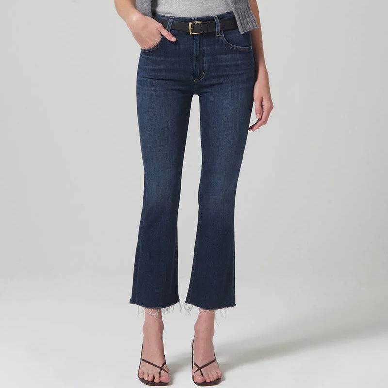 Citizens of Humanity Isola Cropped Boot in Baltic. Your new go-to. The Isola features a flattering mid rise with a close fit through the leg and subtle bootcut flare. This cropped fit hits right above the ankle, making them the perfect pair to show off you