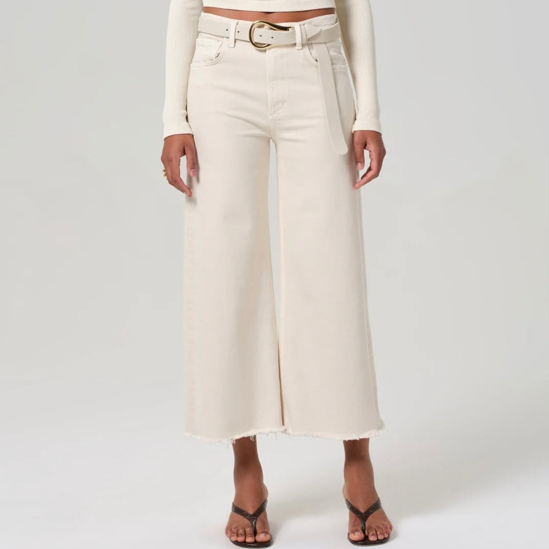 Citizens of Humanity Lyra Wide Leg Crop in Almondette. These truly could not be more comfortable. Crafted from an ultra-lightweight stretch denim, the Lyra is cut with a high rise and breezy wide leg. A true wear-with-everything jean, this is your new wardrobe staple.