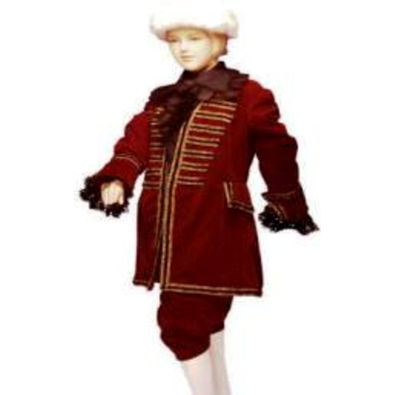 Include: Burgundy velvet jacket & knickers, black shirt w/lace collar & sleeves orBlack velvet jacket & knickers, white shirt w/lace collar & sleeves. Child Size: S, M (8-10),L (12-14), XL (16-18)Colors: Black, Burgundy