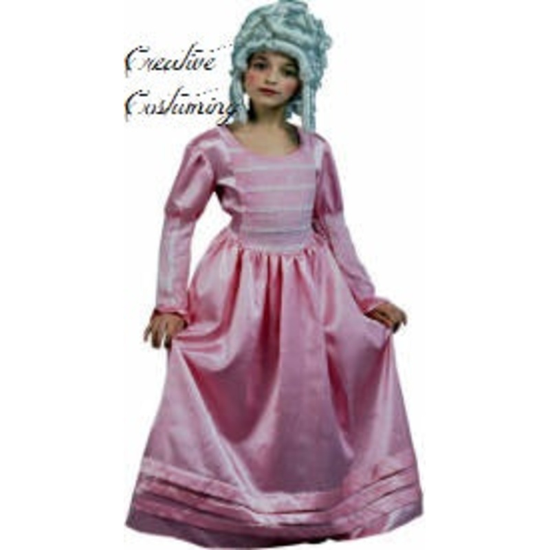 Martha JeffersonIncludes: Pink period style gown accented w/light blue ruffles on the bodice, above the hem, on the full length skirt & on the fitted sleeves.Child Size: S (4-6), M (8-10), L (12-14)Colors: Pink