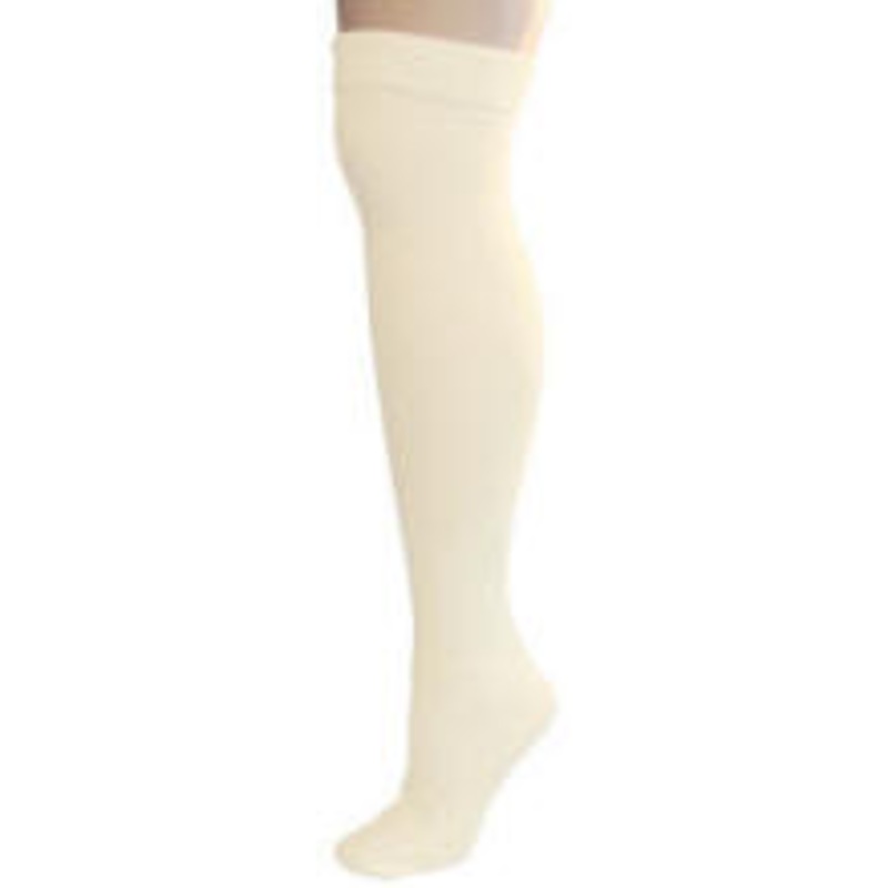 Over the knee tube socks. 80% cotton, 18% nylon & 2% elastic.Color: Natural UnbleachedSize: Total length is 30". Fits size 11-13